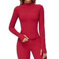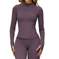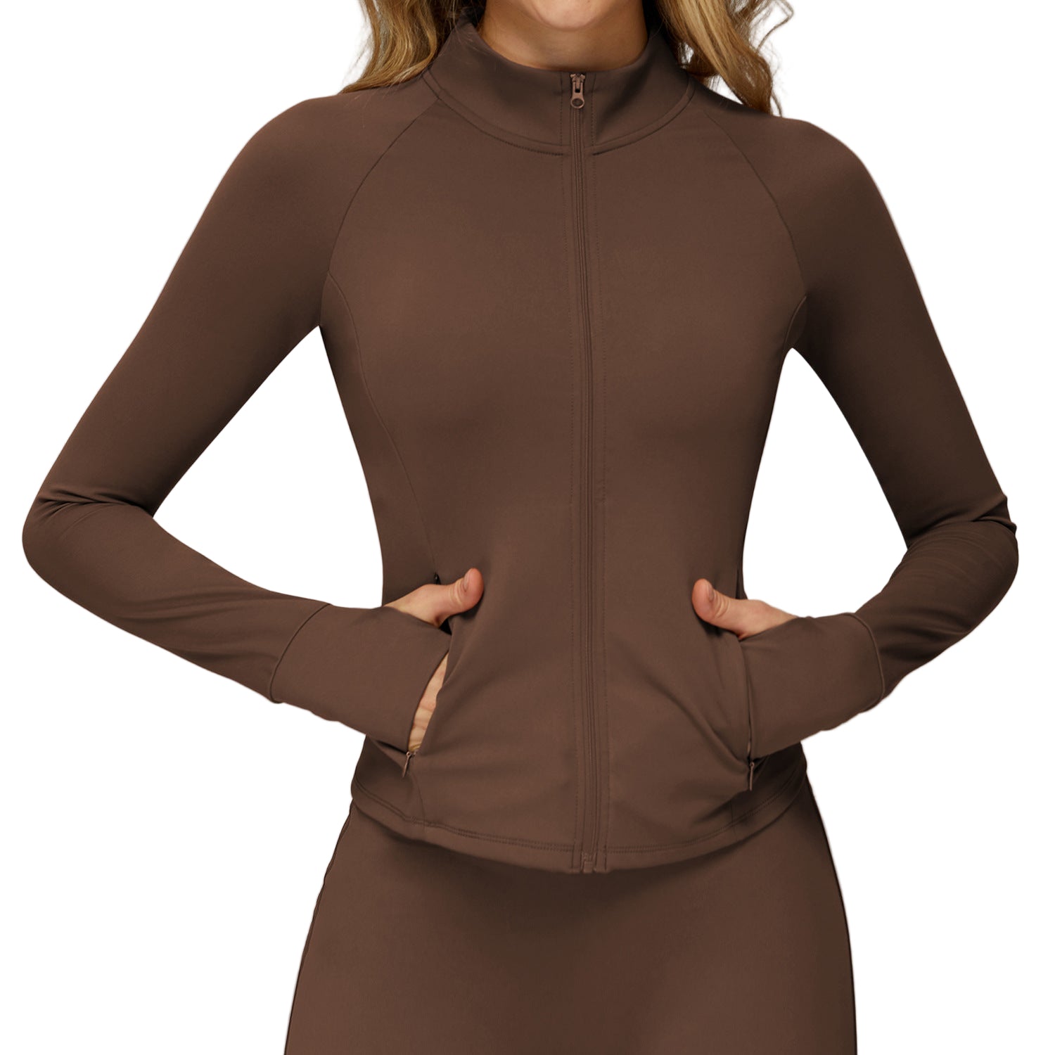 Brushed Yoga Jacket Long-Sleeve Zippered Fitness Top with Pockets
